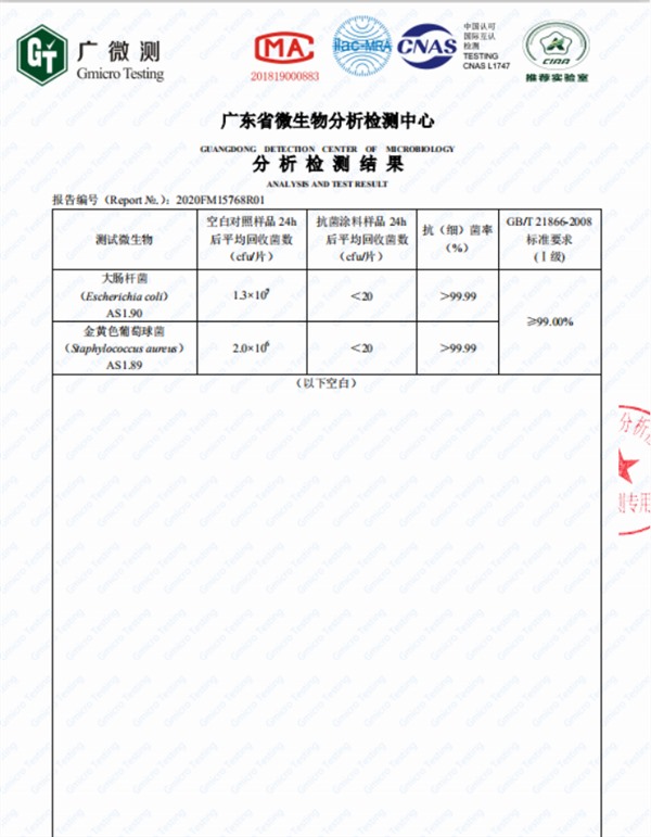 抗菌防霉檢測(cè)報(bào)告: