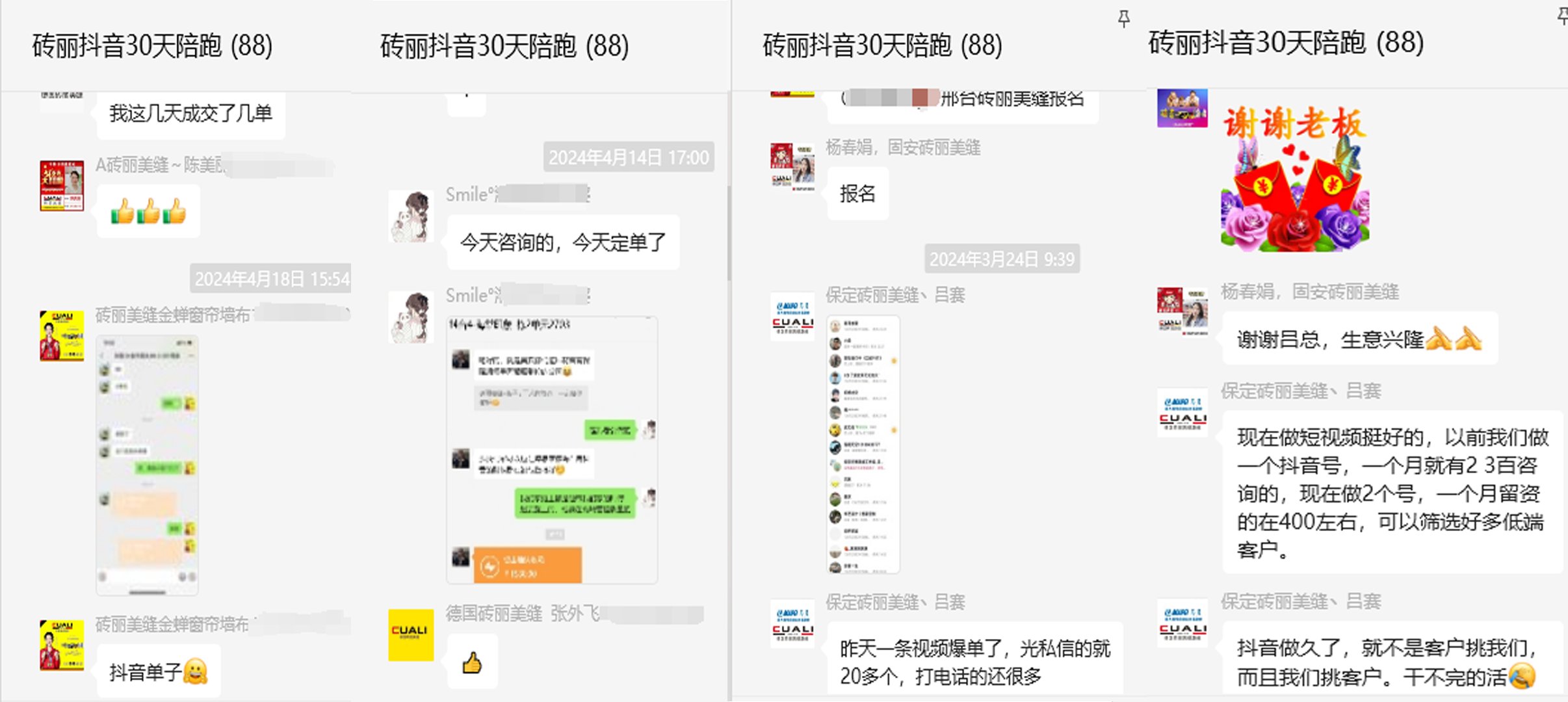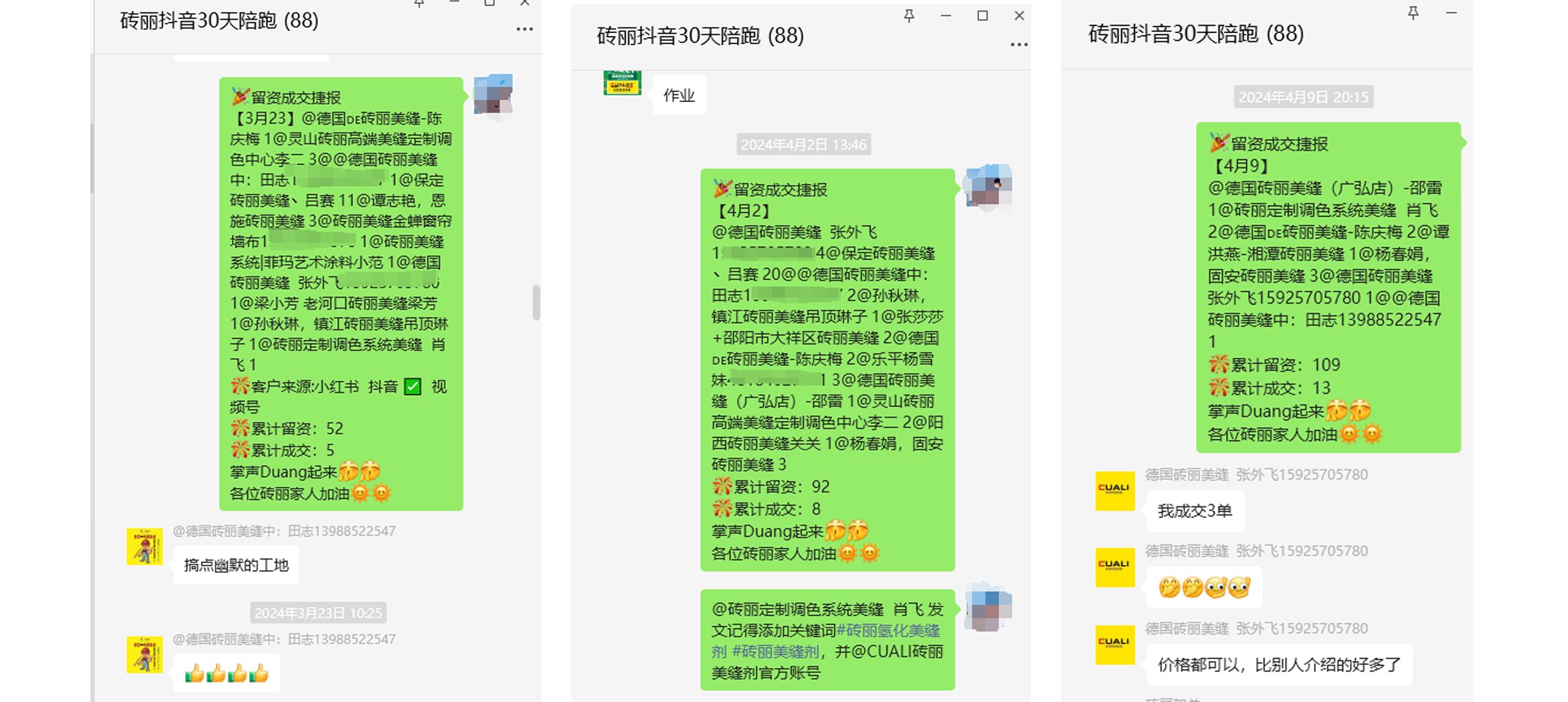 在第一期的陪跑活動中,大部分經(jīng)銷商賬號實現(xiàn)從0到1的成長蛻變,經(jīng)銷商的技能也在不斷升級,期間不斷涌現(xiàn)出許多優(yōu)質(zhì)磚麗美縫同城賬號!